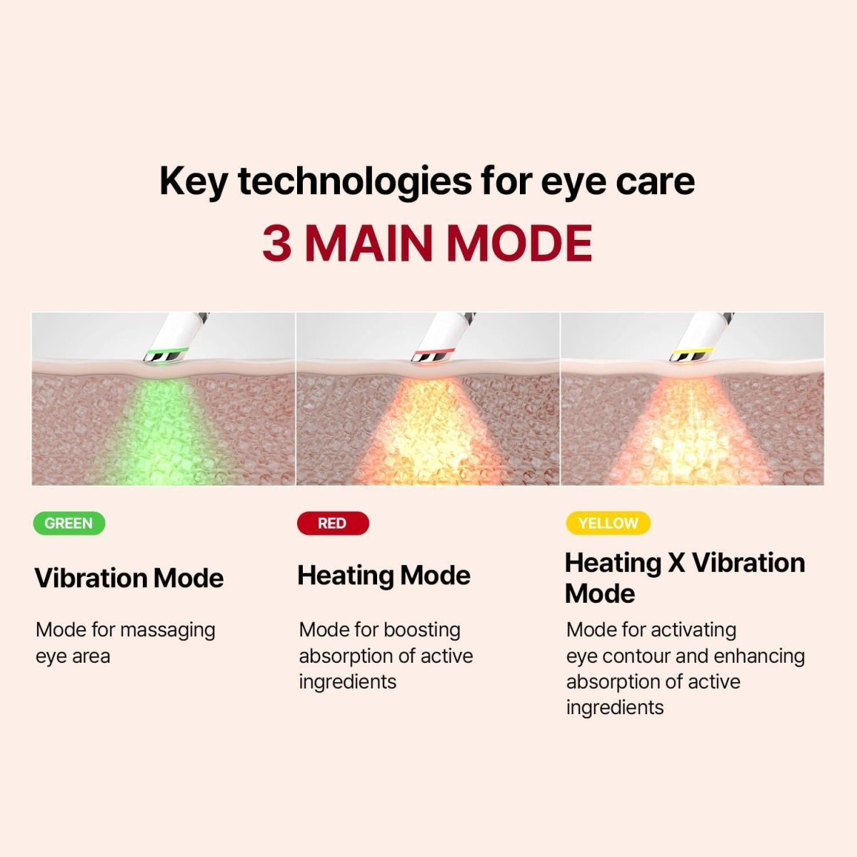 - 🟡 Level 3 (Yellow LED + Heat + Vibration): The ultimate firming treatment! Combines thermal care with micro-vibrations to actively lift and tighten sagging eye bags.