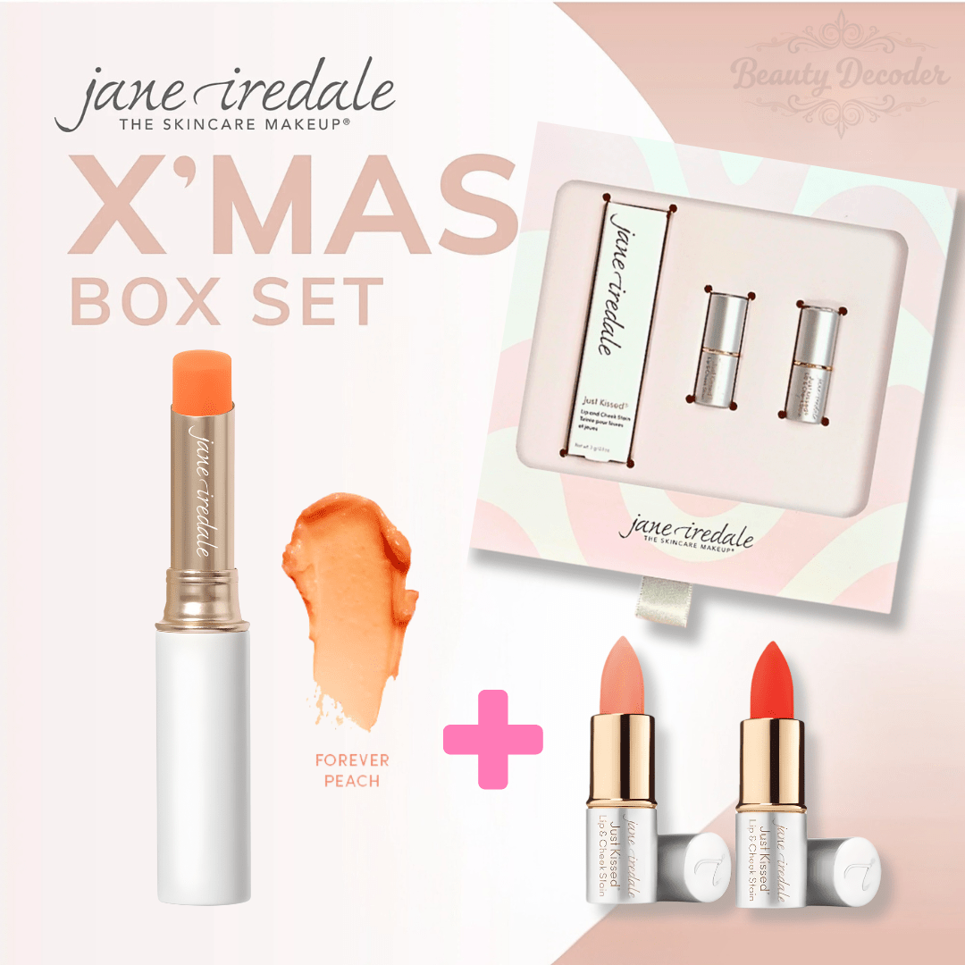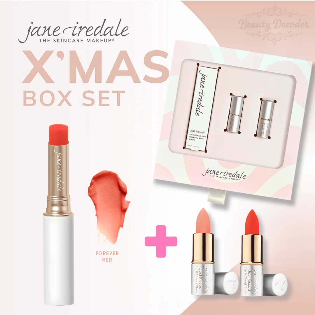 Jane Iredale Just Kissed ® Lip and Cheek Stain Christmas Set (buy 1 get 2 mini free) *Free Gift Mini Red 1.5g+Mini powder 1.5g