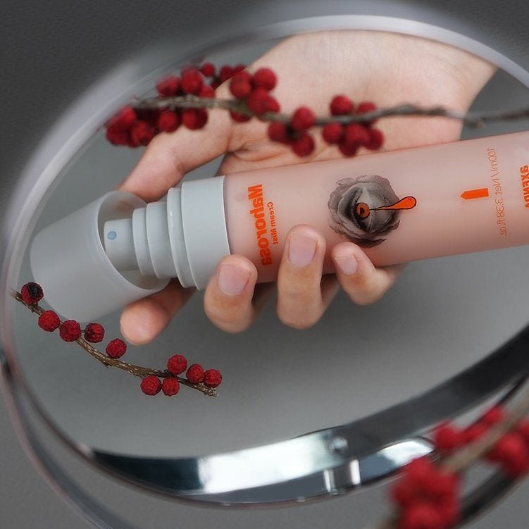 2. Close your eyes and spray evenly at a distance of 20 cm from your face.
