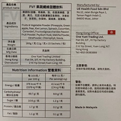 食用方法:用1 包FVF 混合180-300ml 凍水或室溫水飲用。