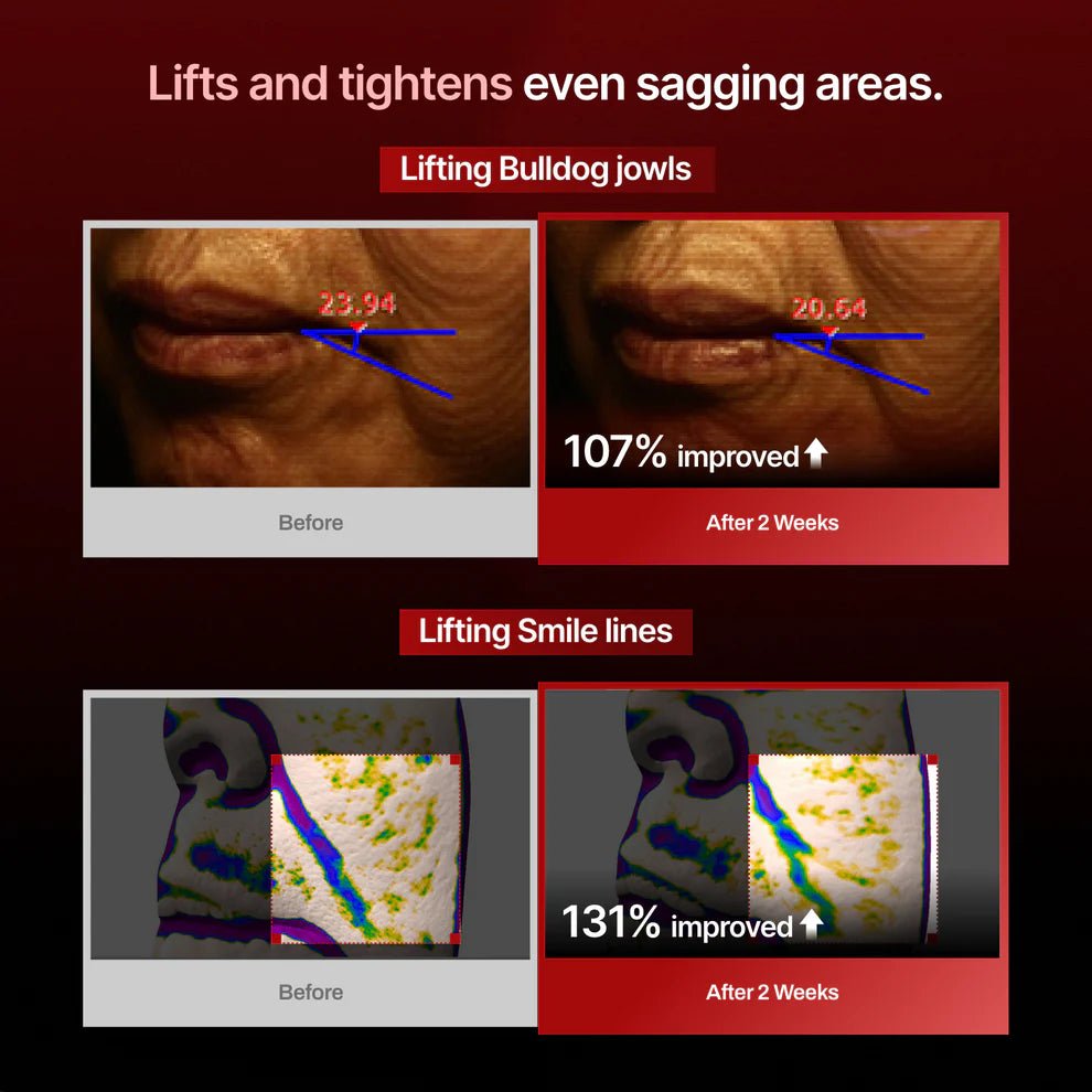 貼好面膜後,沿著下顎線自下而上滾動按摩下垂的下顎線