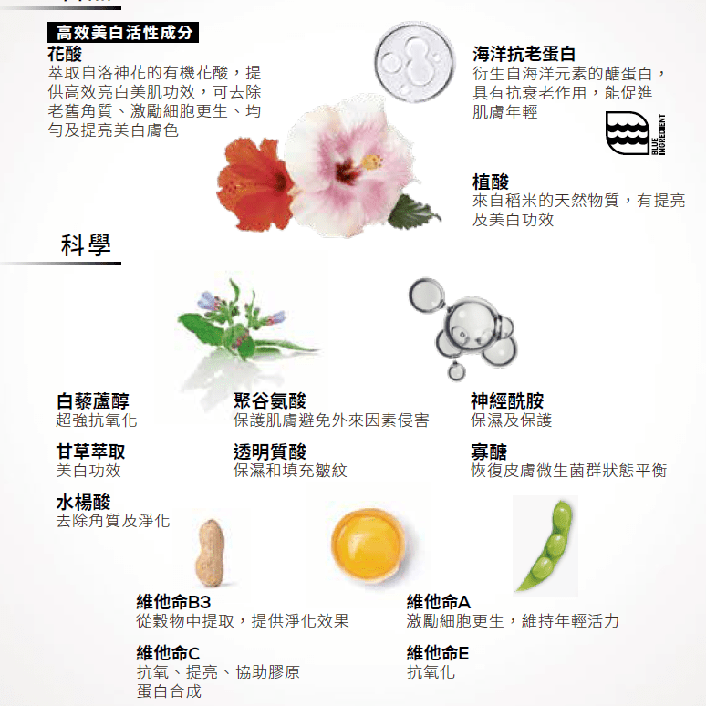 科技與自然結合的核心配方,含生命力頑強不死的耶 利哥薔薇,木瓜蛋白酶分子膜及結合4種新類型透 明質酸的複合物,Ten Science重磅新品- Fill Regen讓肌膚逆轉盈活,覺醒年輕!Fill Regen 煥新及填充護理, 形成獨特的協同作用,帶來結合統一的完美效果。