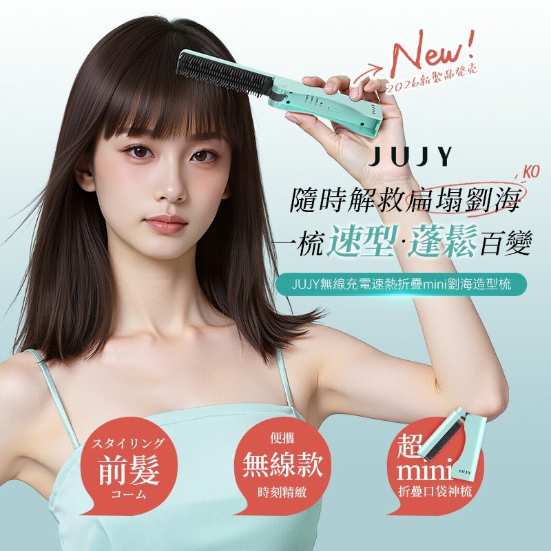 早上趕出門、午休補妝、約會前急救造型,一把就夠。JUJY無線折疊造型梳:30秒升溫即用,輕巧折疊放包唔佔位;無線免插電,隨時整理劉海髮尾;窄梳面+弧形設計,一梳自然內扣外翻。