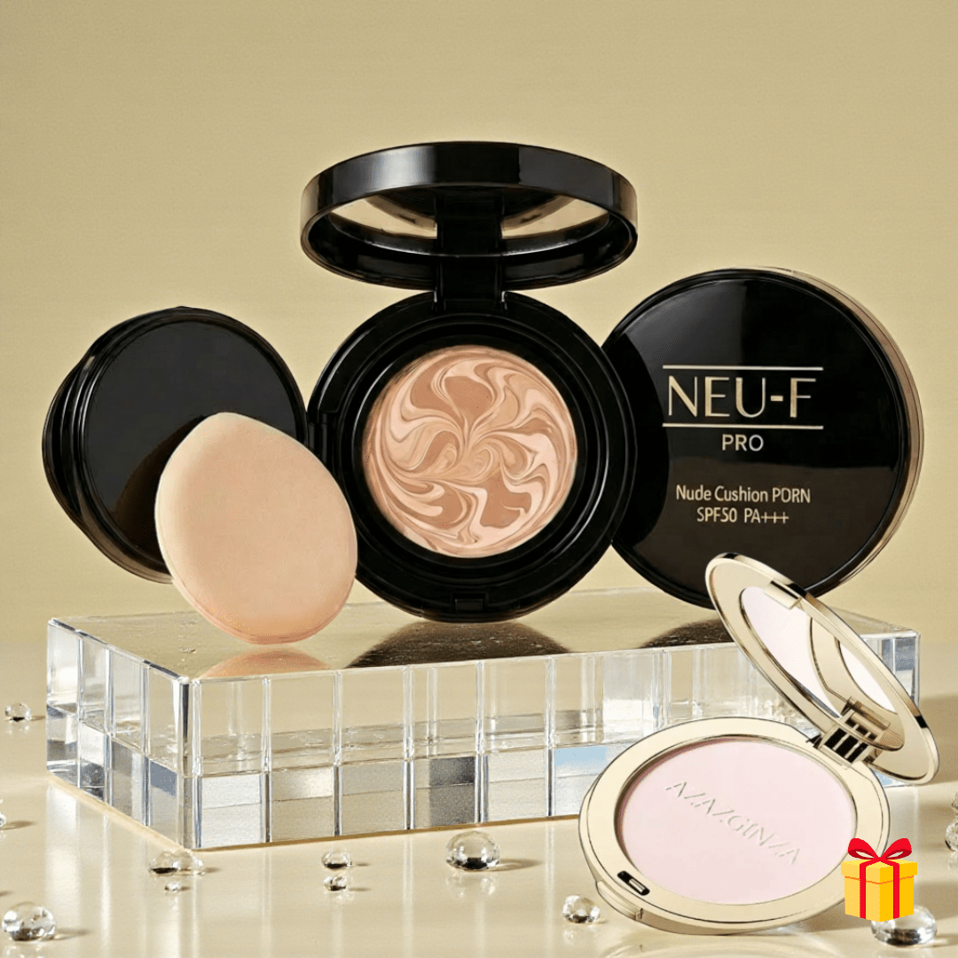NEU-F Pro Nude PDRN Cushion SPF50+ 12g+refill 12g +Free AZAZGINZA Cellpro 3D Powder Compact x1