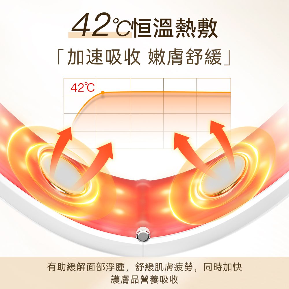 - 🔥 42°C 恆溫熱敷 + 聲波震動: 宛如美容師的熱石按摩!以 8600 rpm 震動頻率配合 42°C 熱敷,極速促進血液循環,並讓瘦面精華/保養品的吸收率提升 300%!