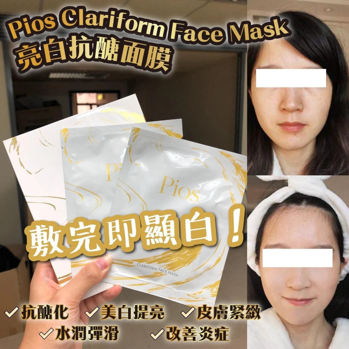 韓國出品PIOS CLARIFROM FACE MASK亮白抗糖面膜